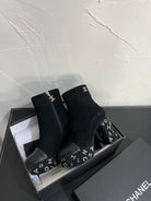 CC Short Boots 95mm In Black With Letters Printed Suede And Lambskin 949659