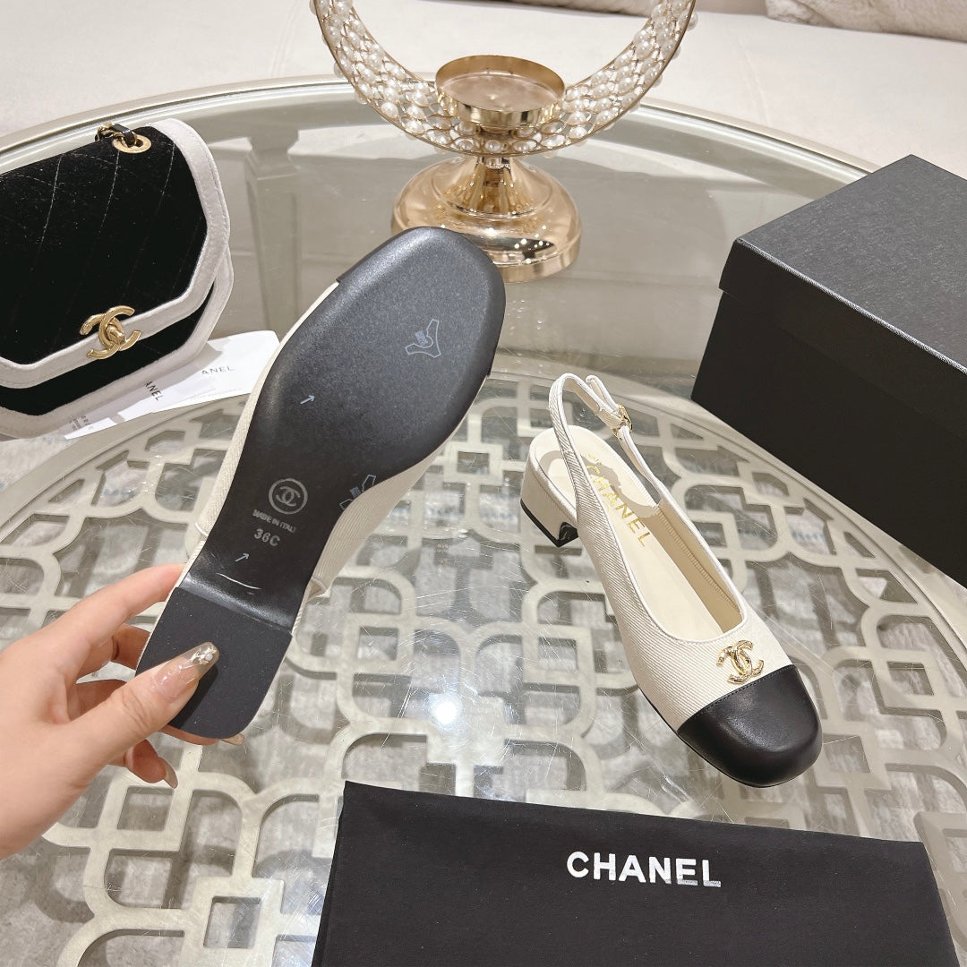 CC Slingbacks 35mm In Ivory White Mix Black Lycra Fabric And Lambskin 943263