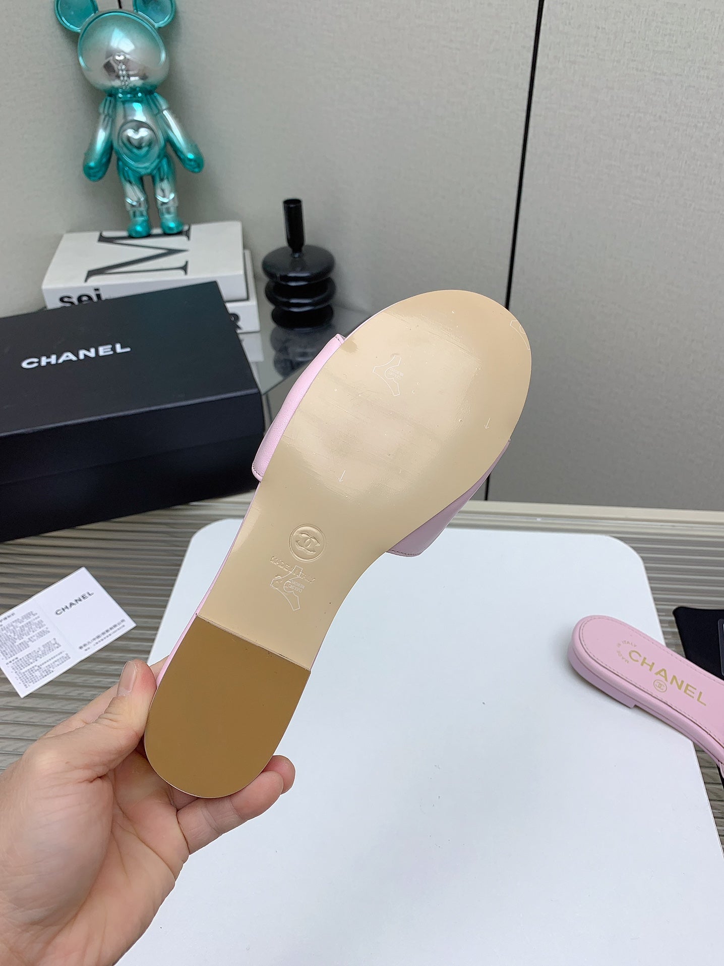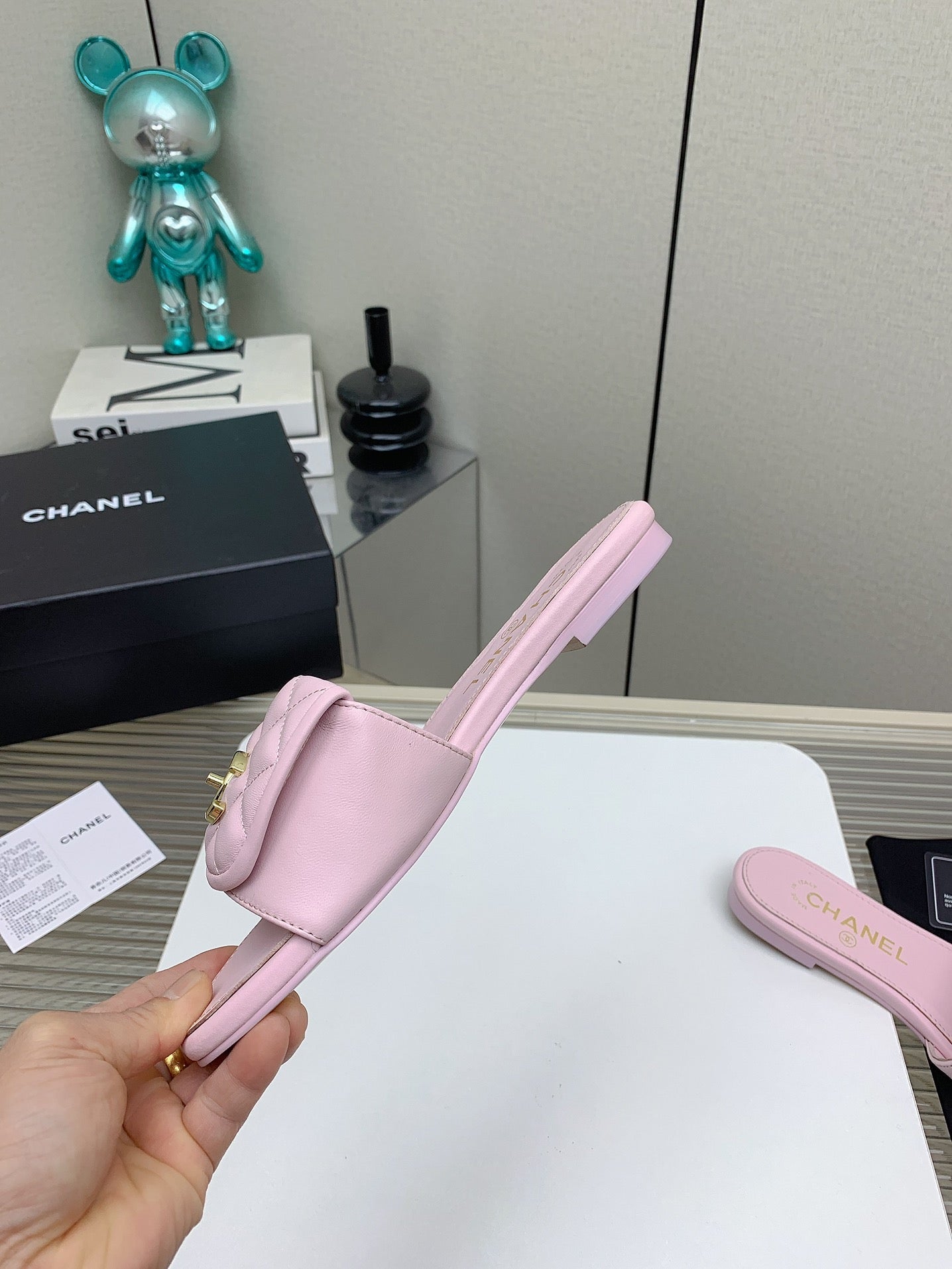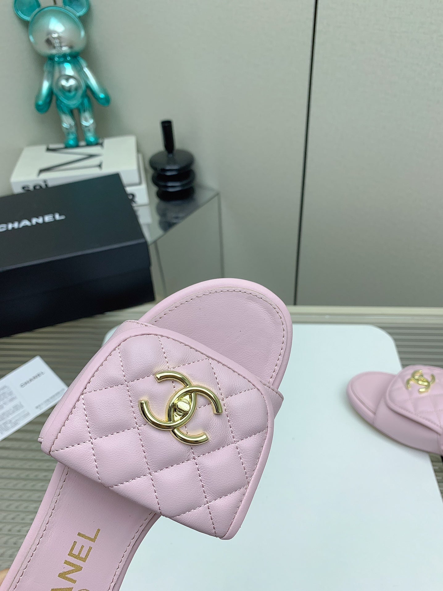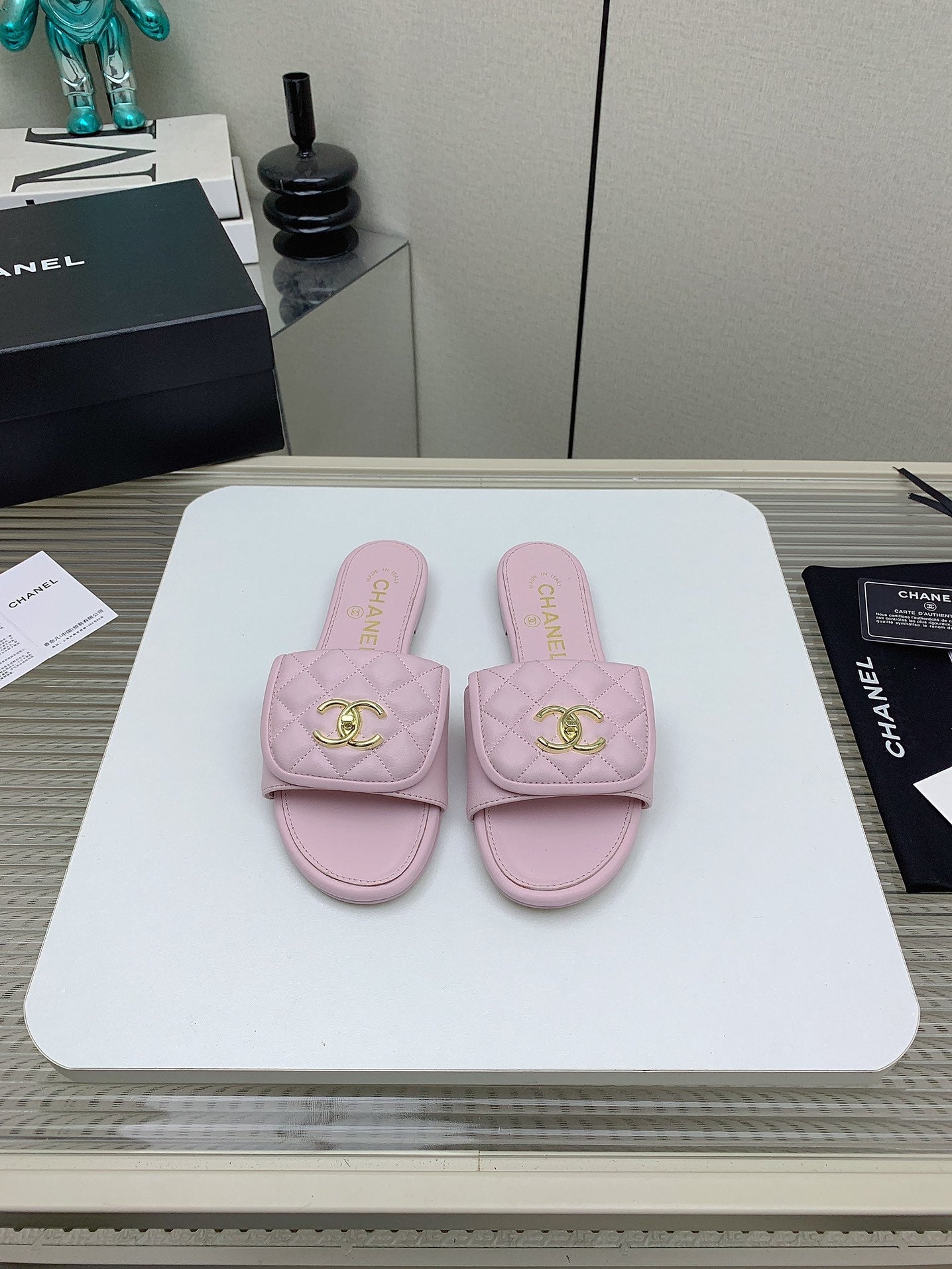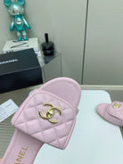 CC Slippers In Light Pink Quilted Lambskin 148965