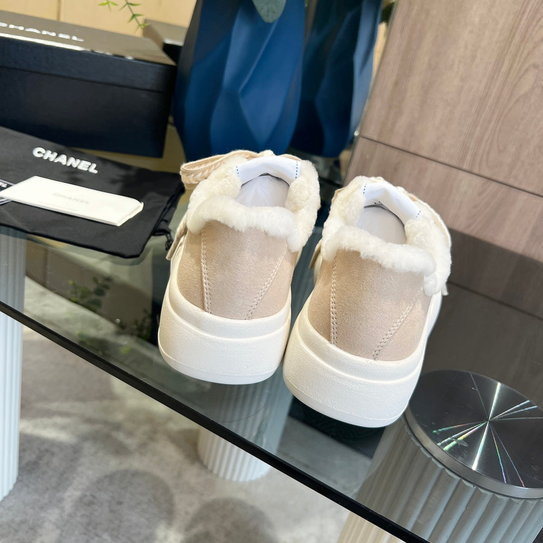 CC Sneaker Thick-Soled Beige Suede Wool Lining Fleece