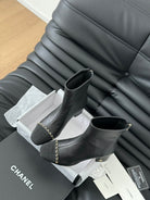 CC Ankle Boot Black Calfskin Grosgrain Leather Strap
