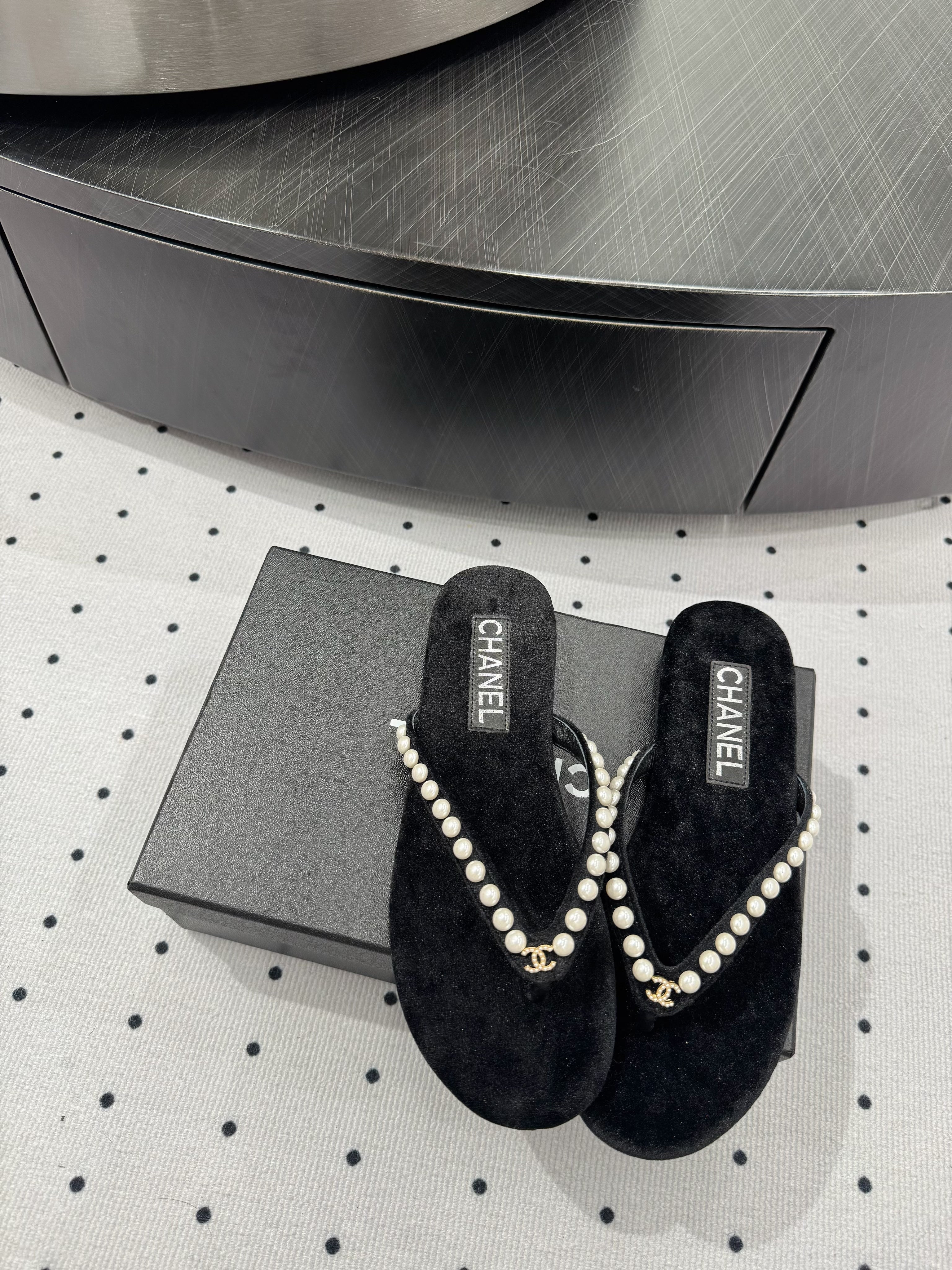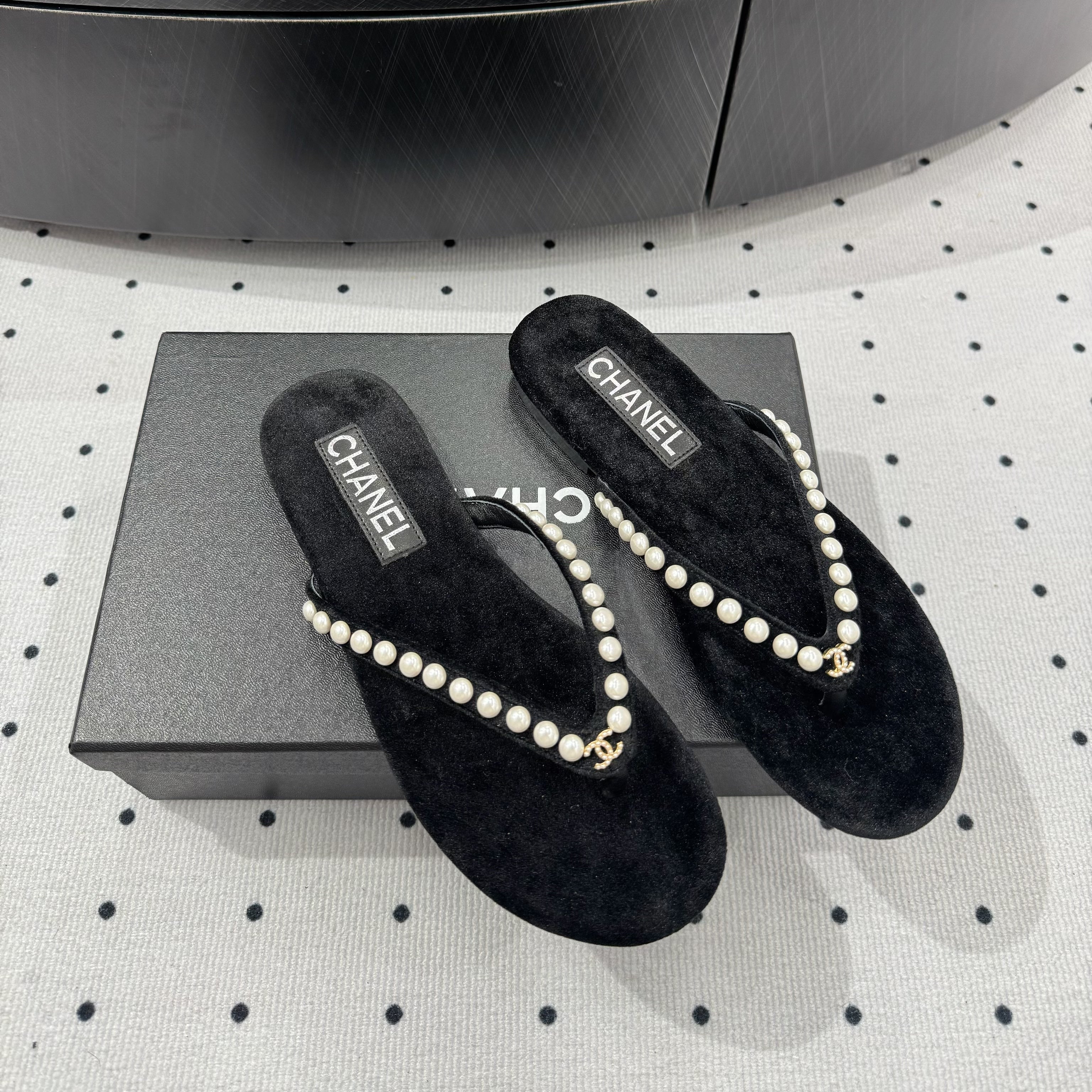 CC Thong Slippers Black Velet Pearl