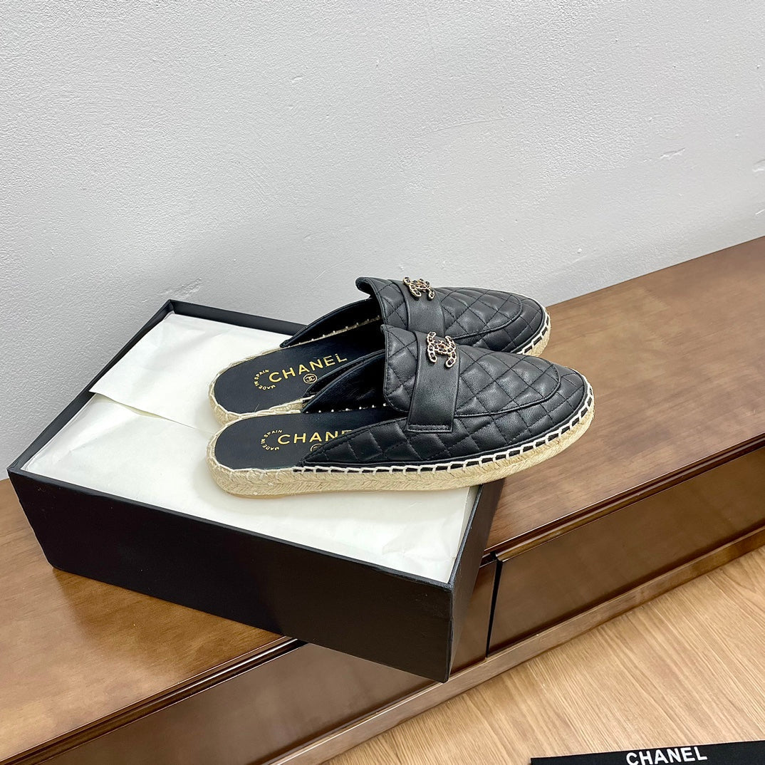 cc mule espadrilles bkack calfskin