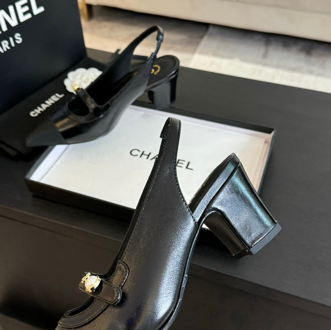 Double C WOMEN'S Slingback SPIRIT TOE Black Lambskin