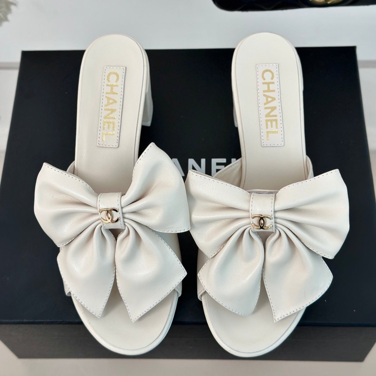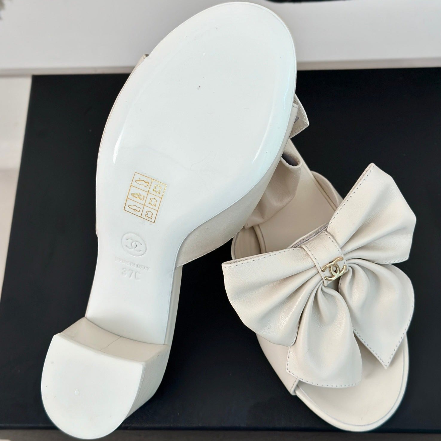 cc big bow sandal 60 white lambskin