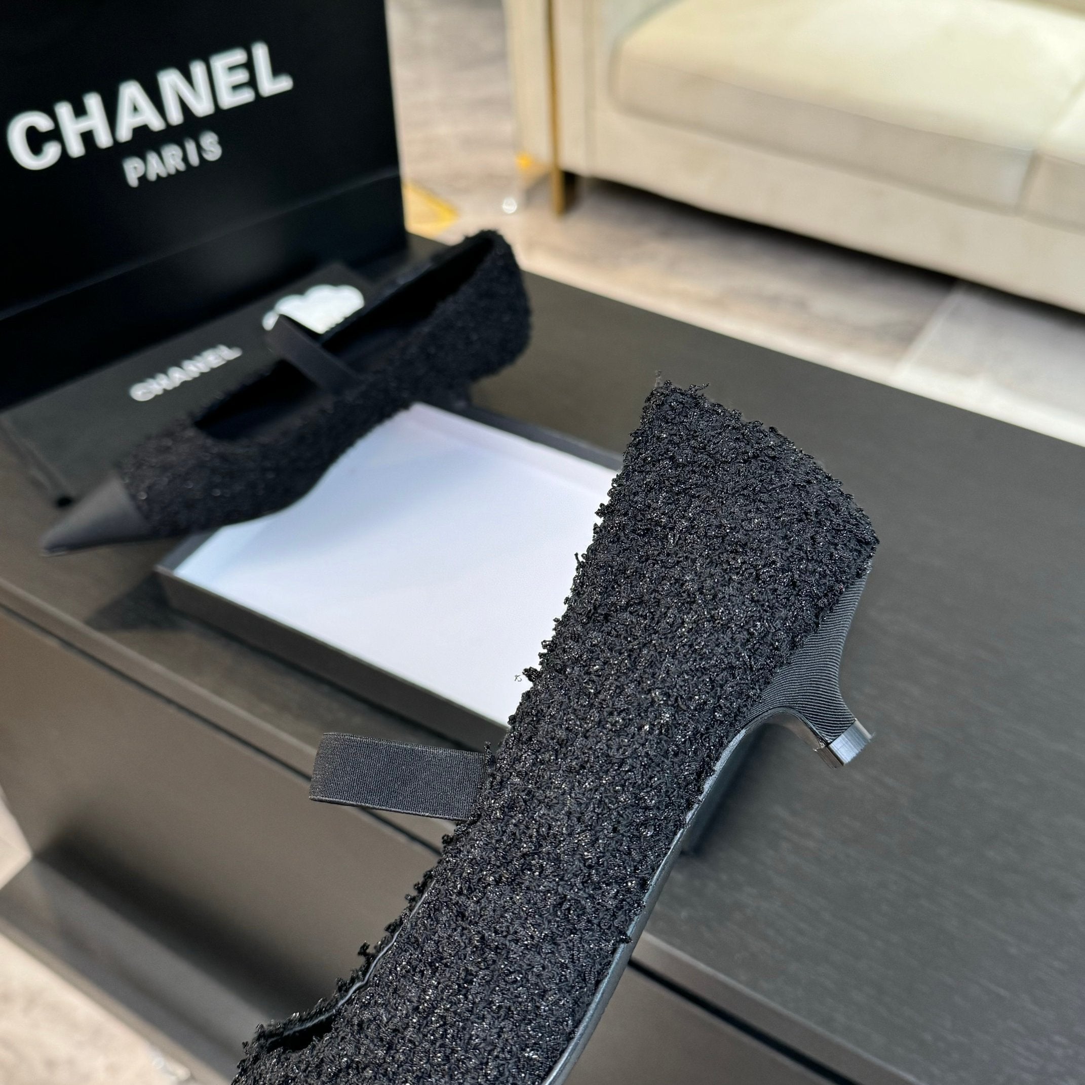 mary jane 35 pointed toe black tweed black grosgrain