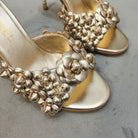 mule sandal 80 gold metalic calfskin flower