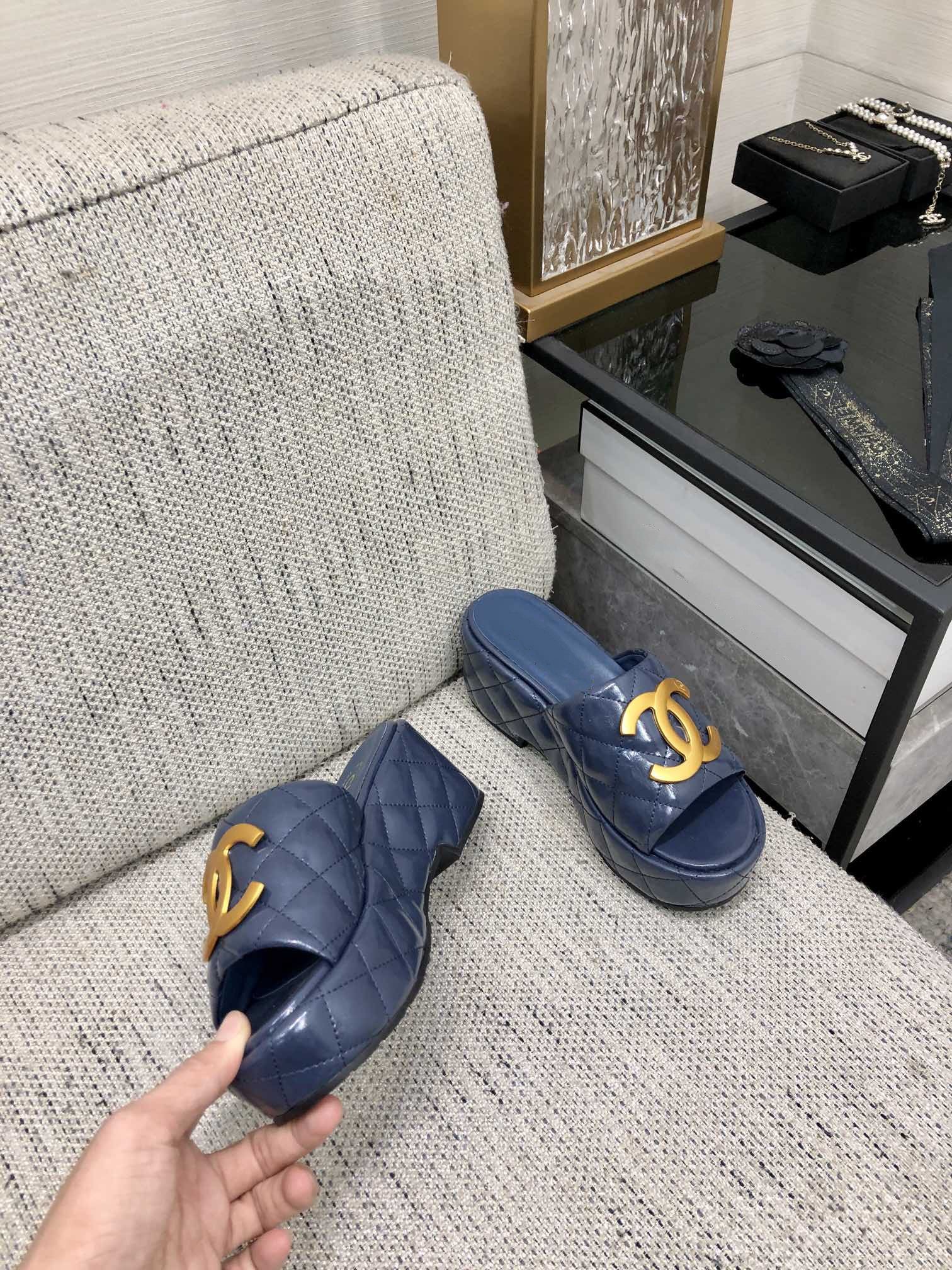 mule sandal 95 blue quilted waxed leather