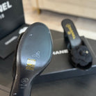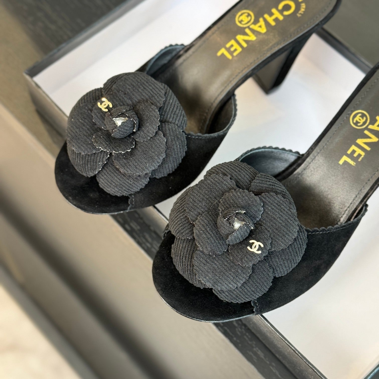mule sandal flower high heel 80 black suede