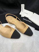 Slingback Flat Beige Lambskin Black Grosgrain