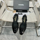 slingbacks flat black tweed black patent calfskin