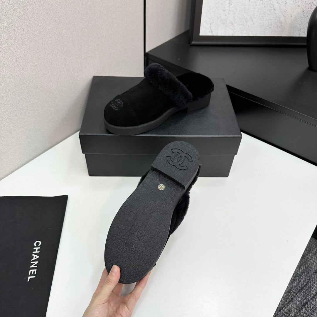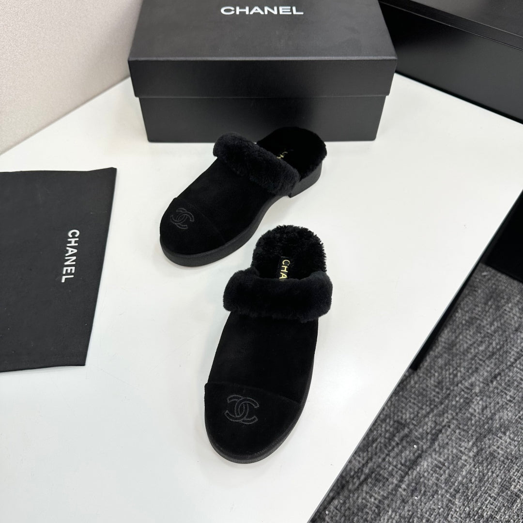 CC 25s Furry Snow Boots Black Leather Wool 512066