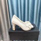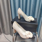 CC HIGH HEELS 80 MM IN WHITE SUEDE AND BLACK CALFSKIN WITH FLOWER
