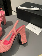 CC Slingback 95mm Pink Red Tweed Fabric