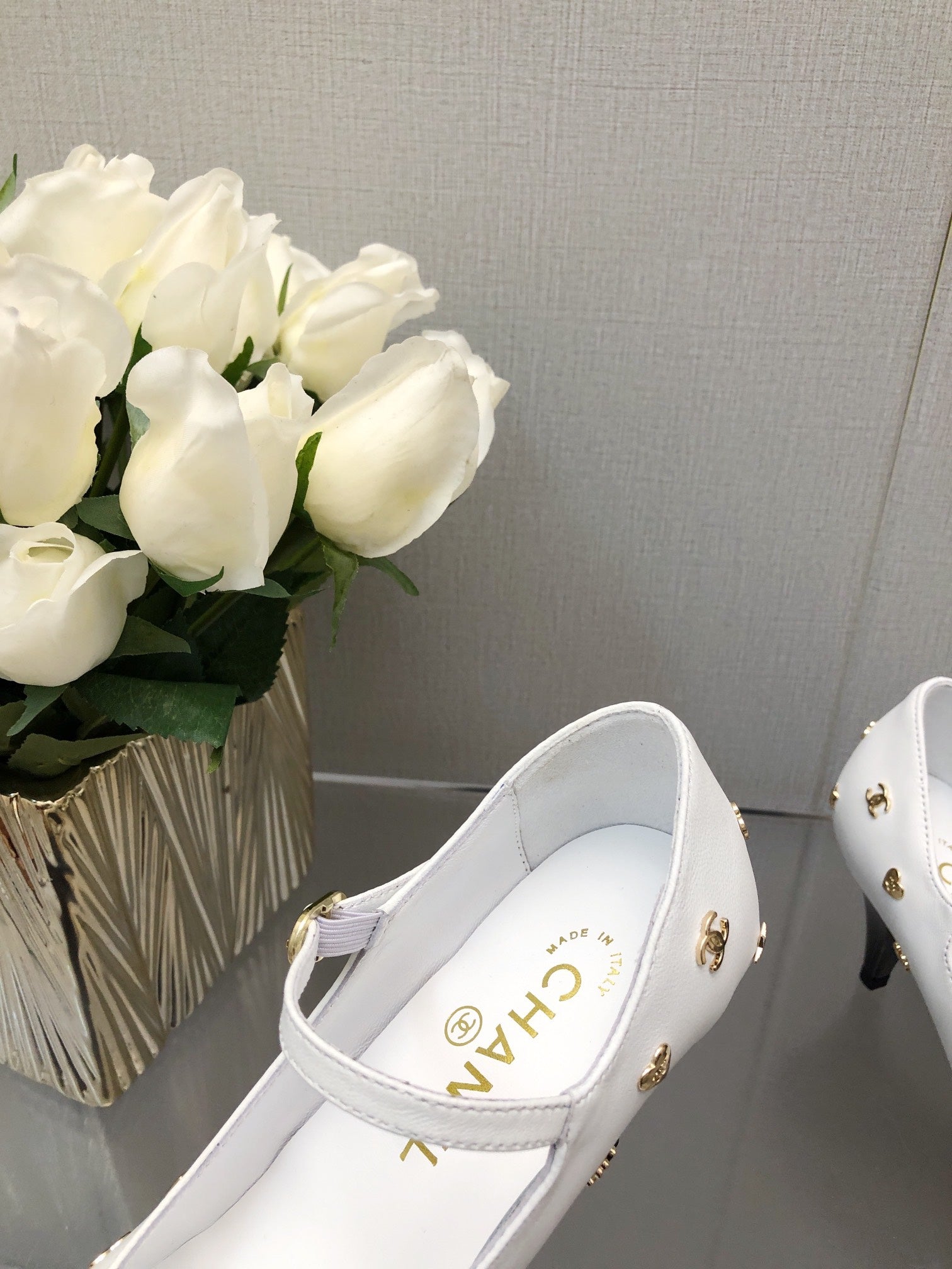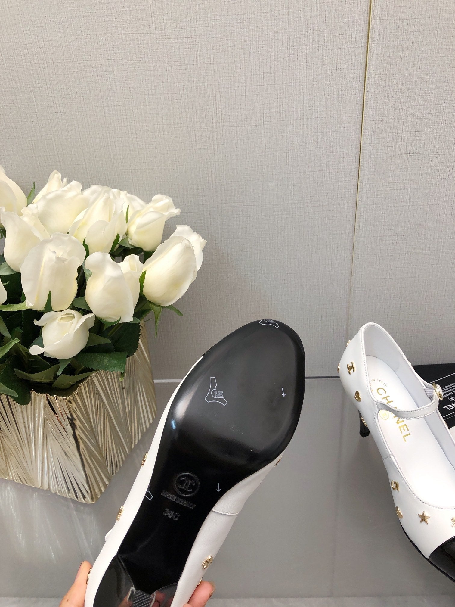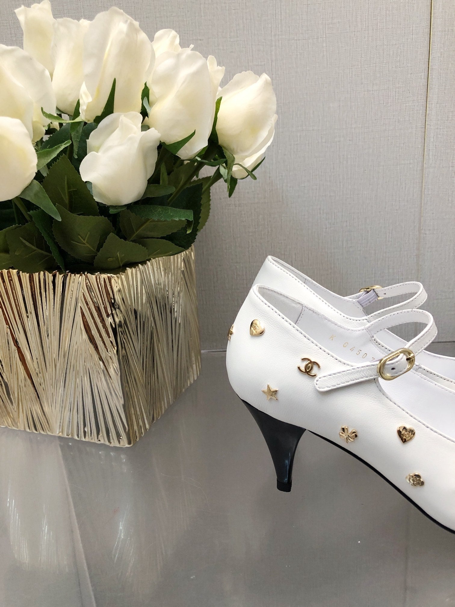 MARY JANE WHITE MIX BLACK LAMBSKIN ATTACH METAL