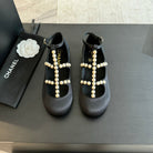 MARY JANES SHOES BLACK GOATSKIN WITH FAUX PEARL