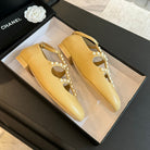 MARY JANES SHOES LIGHT YELLOW GOATSKIN WITH FAUX PEARL