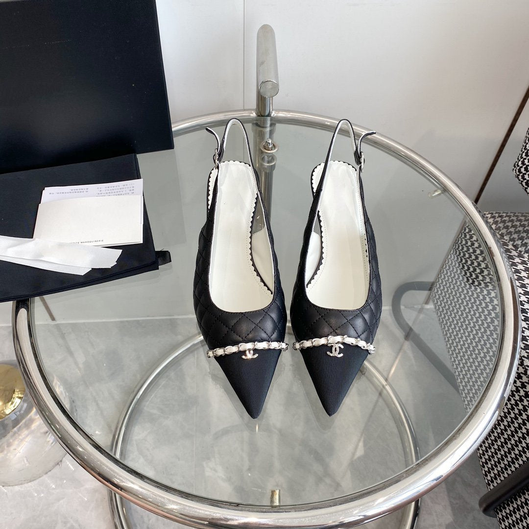 slingbacks pumps 45 black quilted calfskin grosgrain