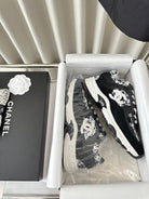 cc sneaker black white tweed black calfskin suede calfskin