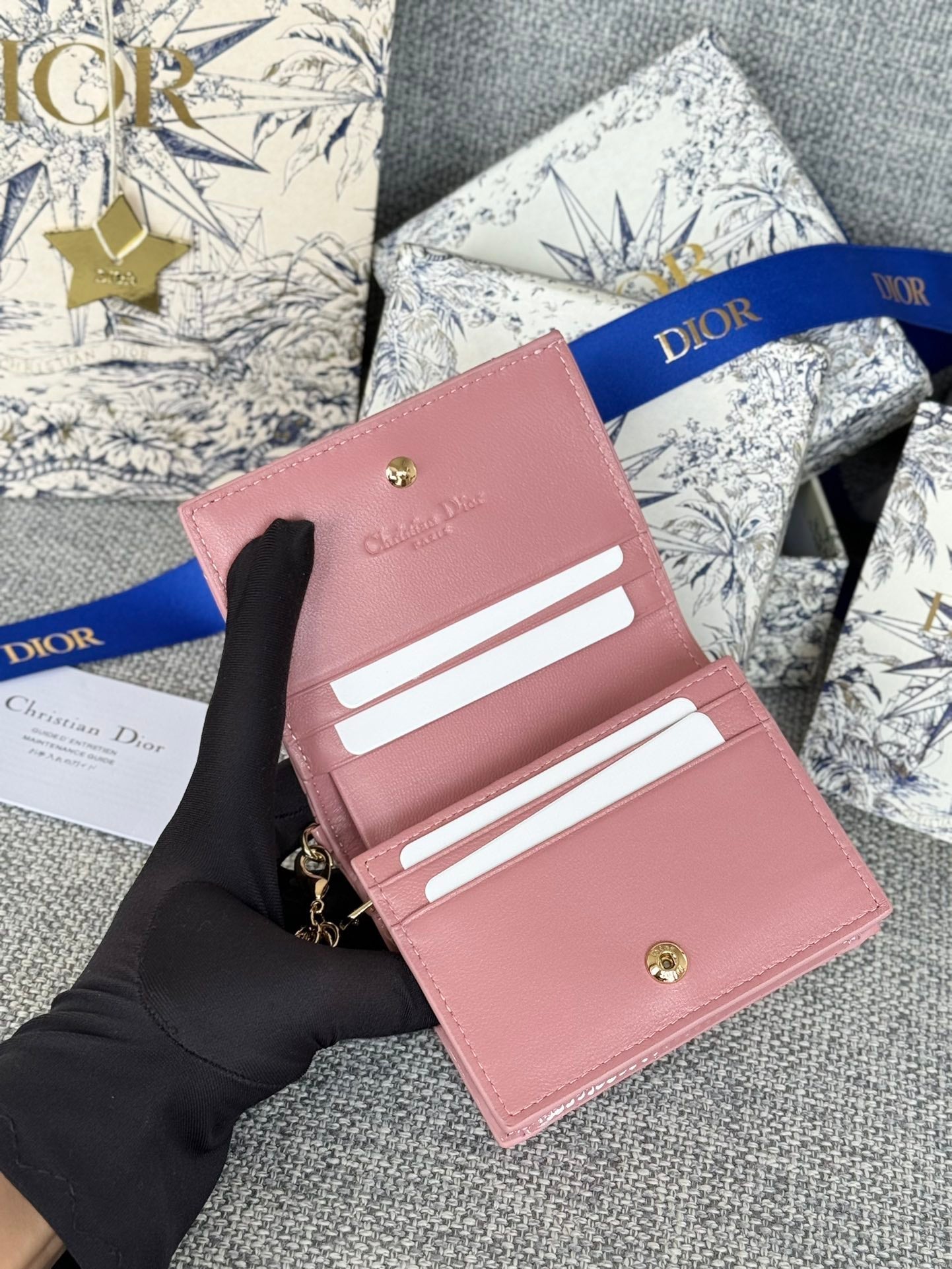 CD Caro 11cm Compact Wallet Shiny Pink Calfskin