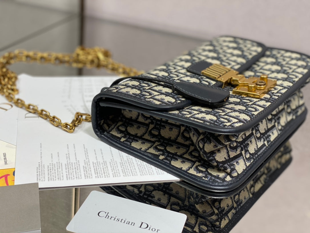 CD embroidered chain bag 24 dark blue leather cotton