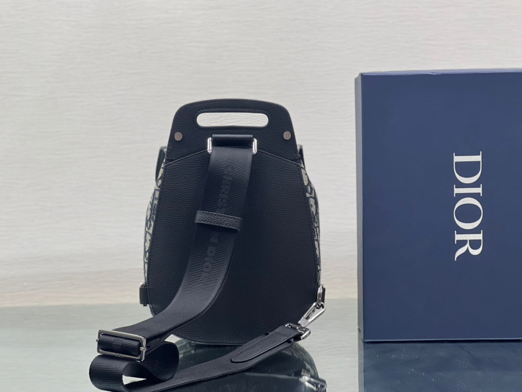 GALLOP SLING BAG 27 IN BEIGE MIX BLACK OBLIQUE JACQUARD AND CALFSKIN