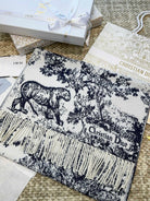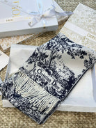 SCARF 220 CM IN NAVY BLUE MIX WHITE MONOGRAM CASHMERE AND WOOL 413656