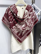 SQUARE SCARF 140 CM IN MAROON RED MIX WHITE MONOGRAM WOOL AND SILK 415110