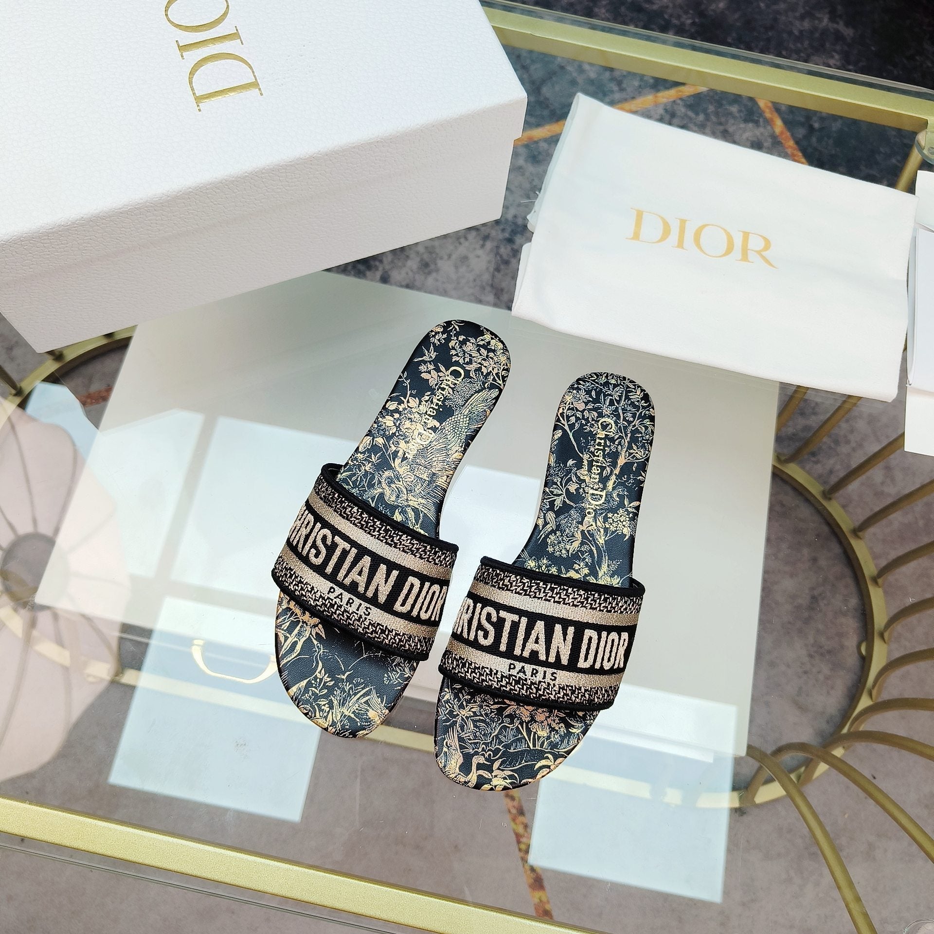 CD Dioract Slide Lambskin and Canvas 242450