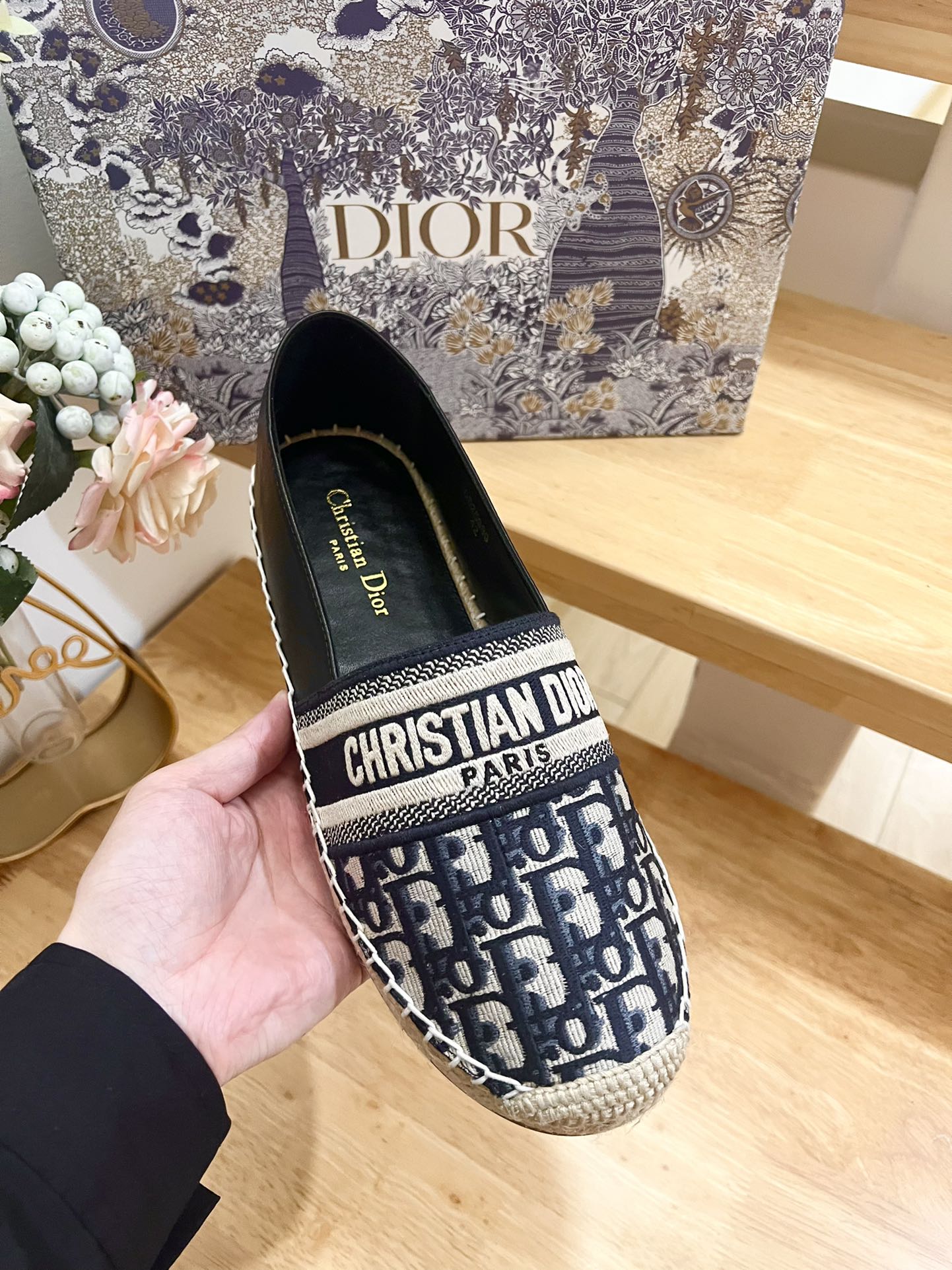 CD Granville Espadrille Charcoal Blue Black Oblique Jacquard Fabric And Calfskin