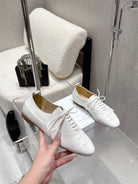 Celine 25 Lise Perforated Triomphe Richelieu Shoe White Lambskin 554196