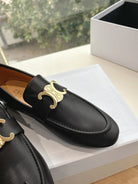 CELINE Buckle Triomphe Loafers Black Leather 285958
