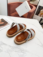 TWO-STRAP SANDALS IN SILVER CALFSKIN