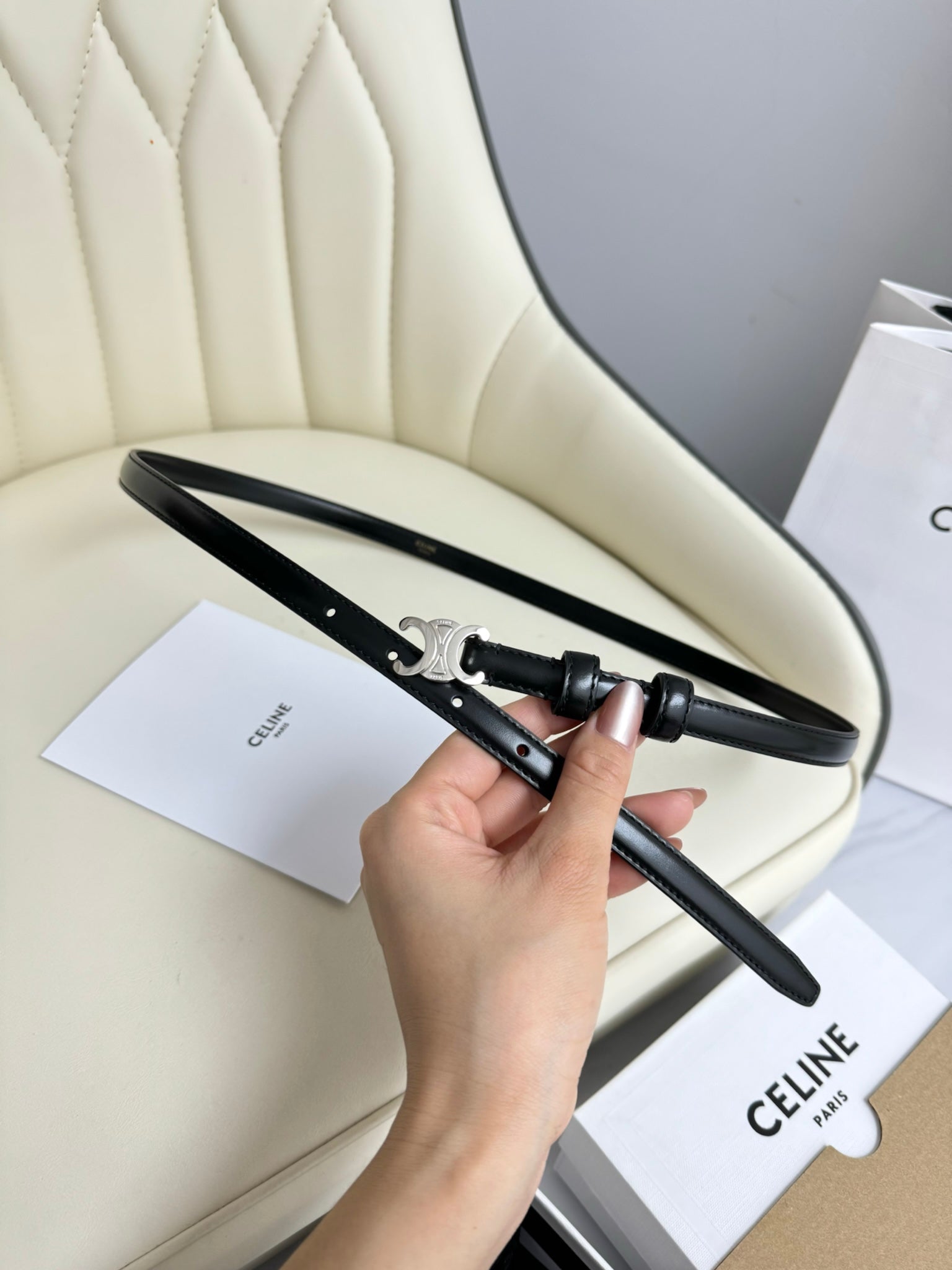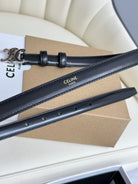 CEL Silver Buckle 13mm Belt Black Cowhide 179726