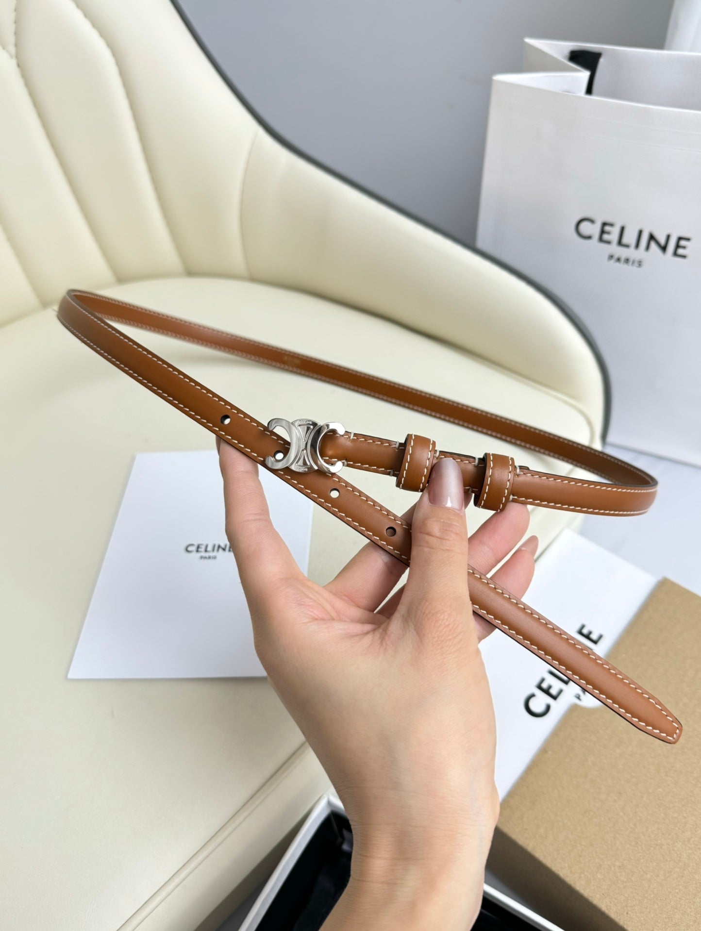 CEL Silver Buckle 13mm Belt Brown Cowhide 179727