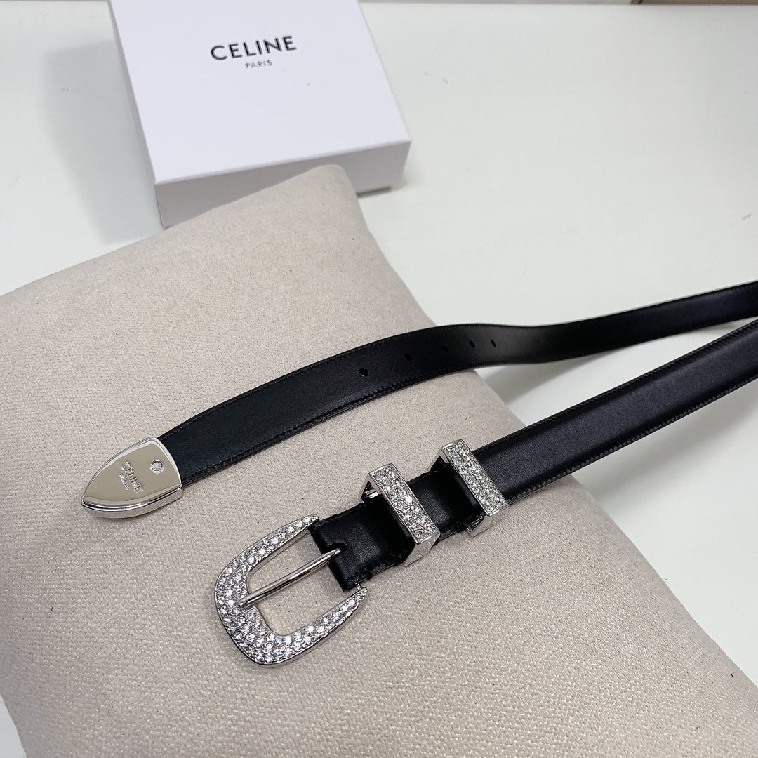 CL 25 MM MARCO BELT WITH STRASS IN BLACK CALFSKIN SILVER HARDWARE