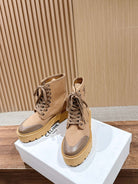 Celine 25 Bulky Lace-up Boot Tan Canvas Calfskin 554014