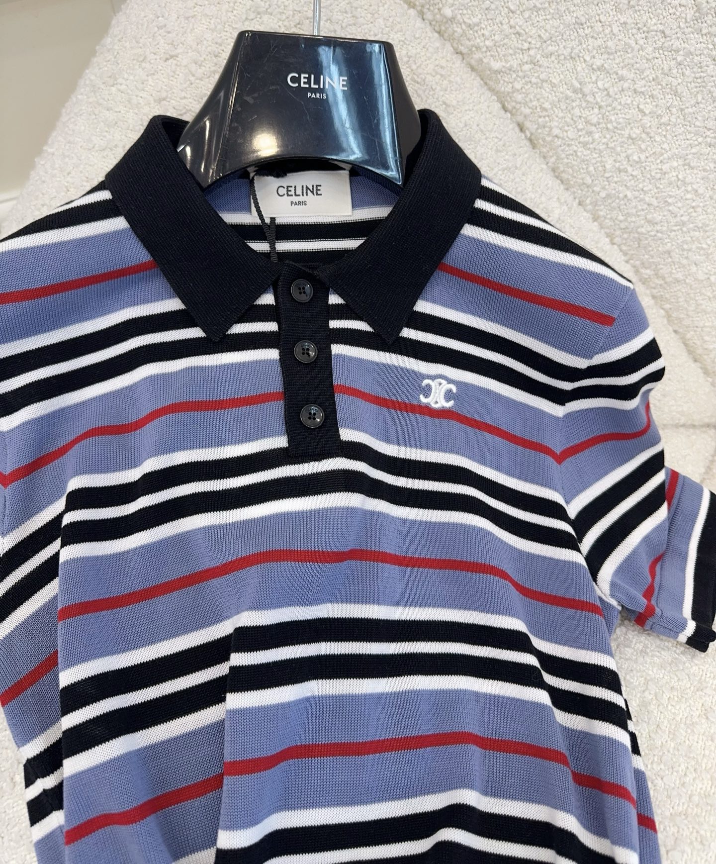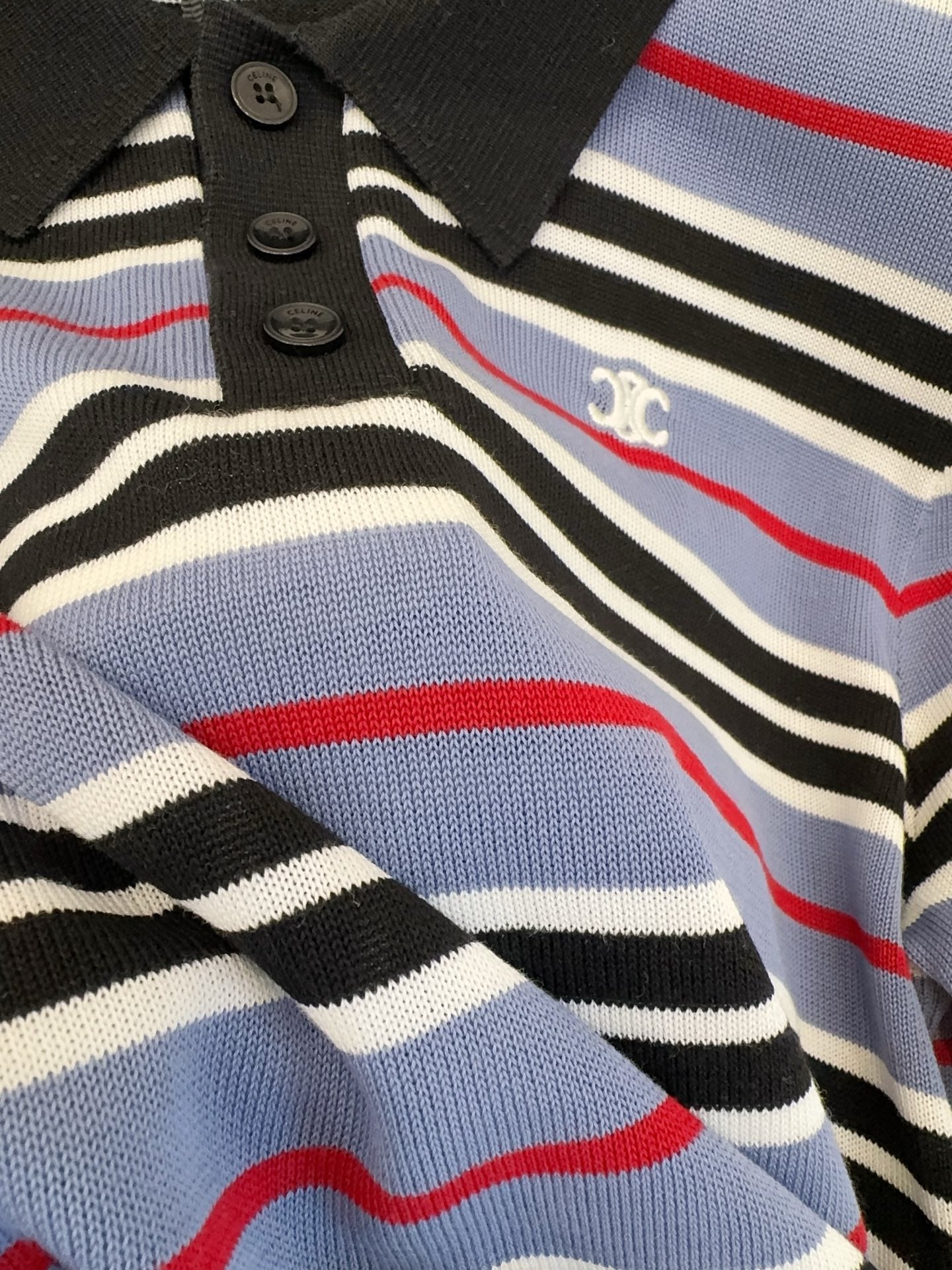 Celine 2025 Striped Polo Shirt Blue Black White Cotton