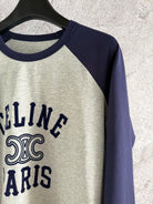 Celine 25 Flocked T-shirt Gray mix Navy Blue Cotton