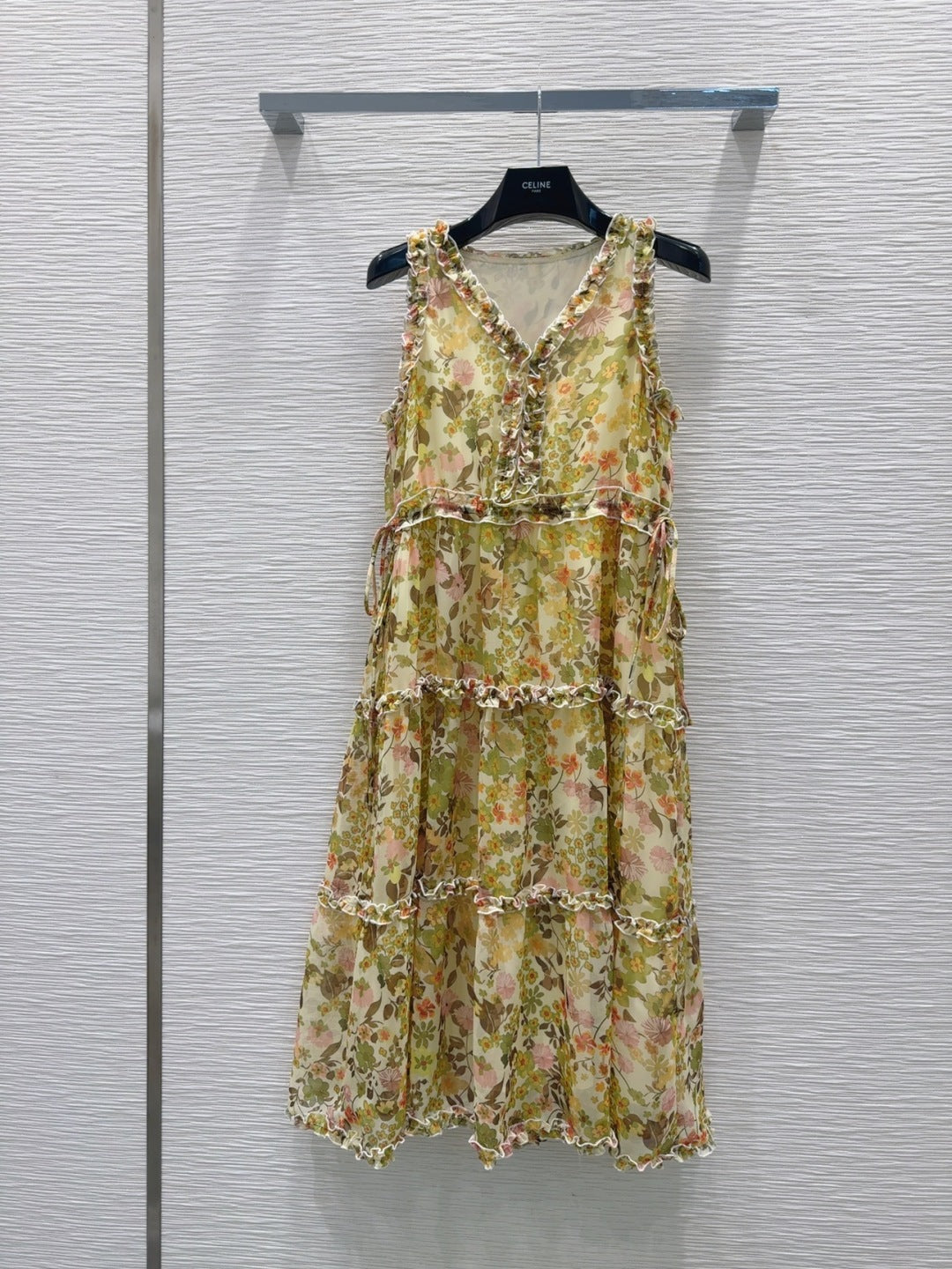 Celine 25 Floral Sleeveless Dress Green mix colors Polyester
