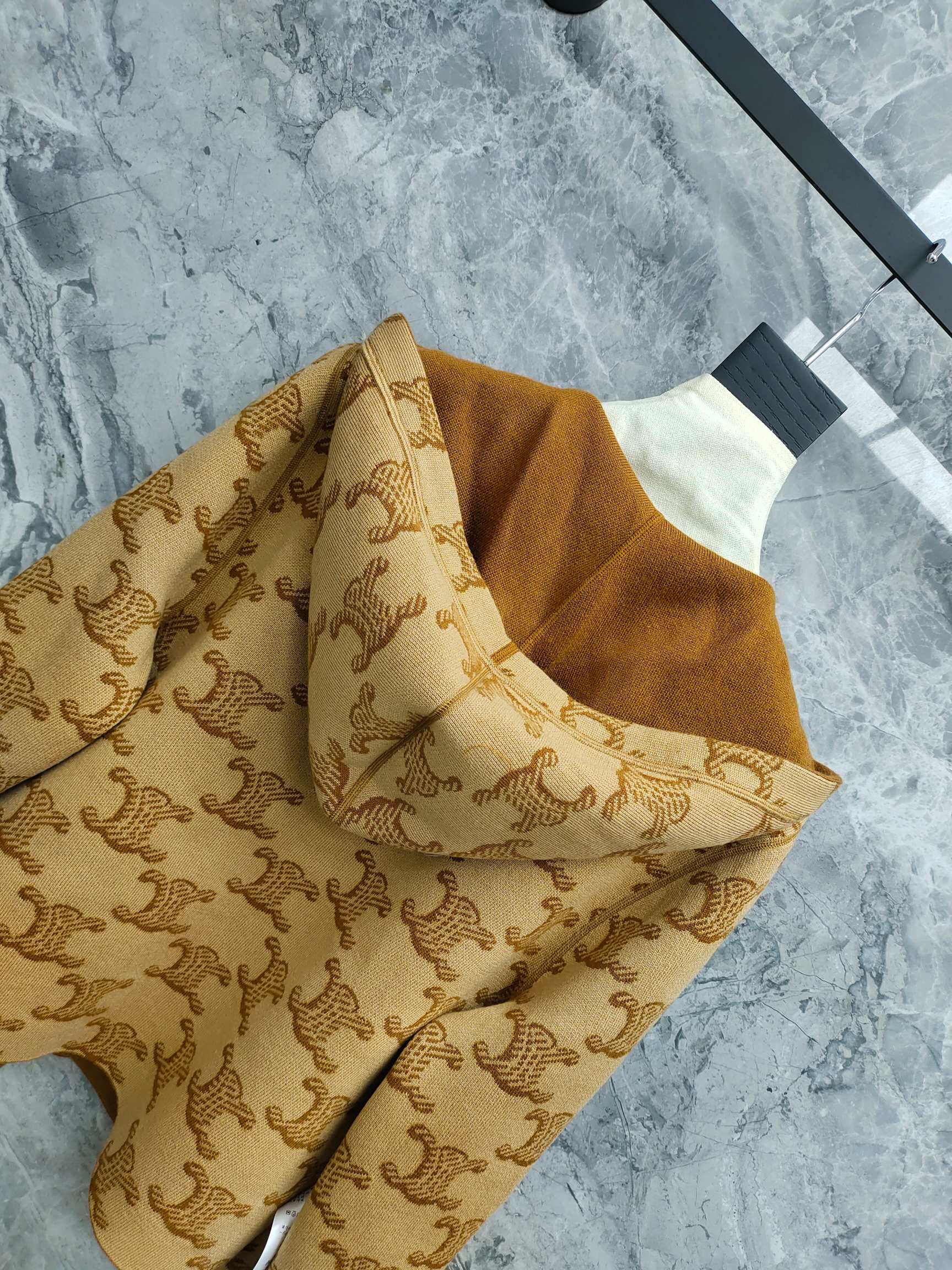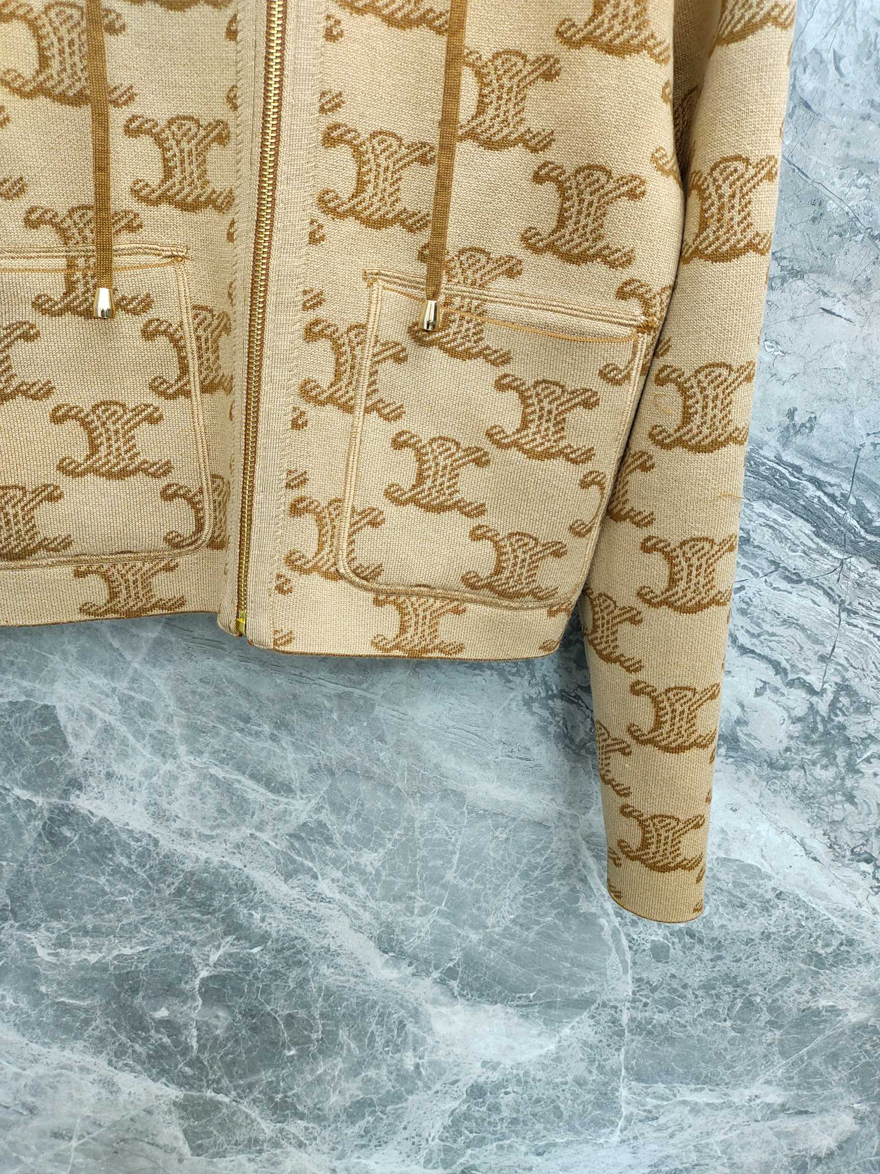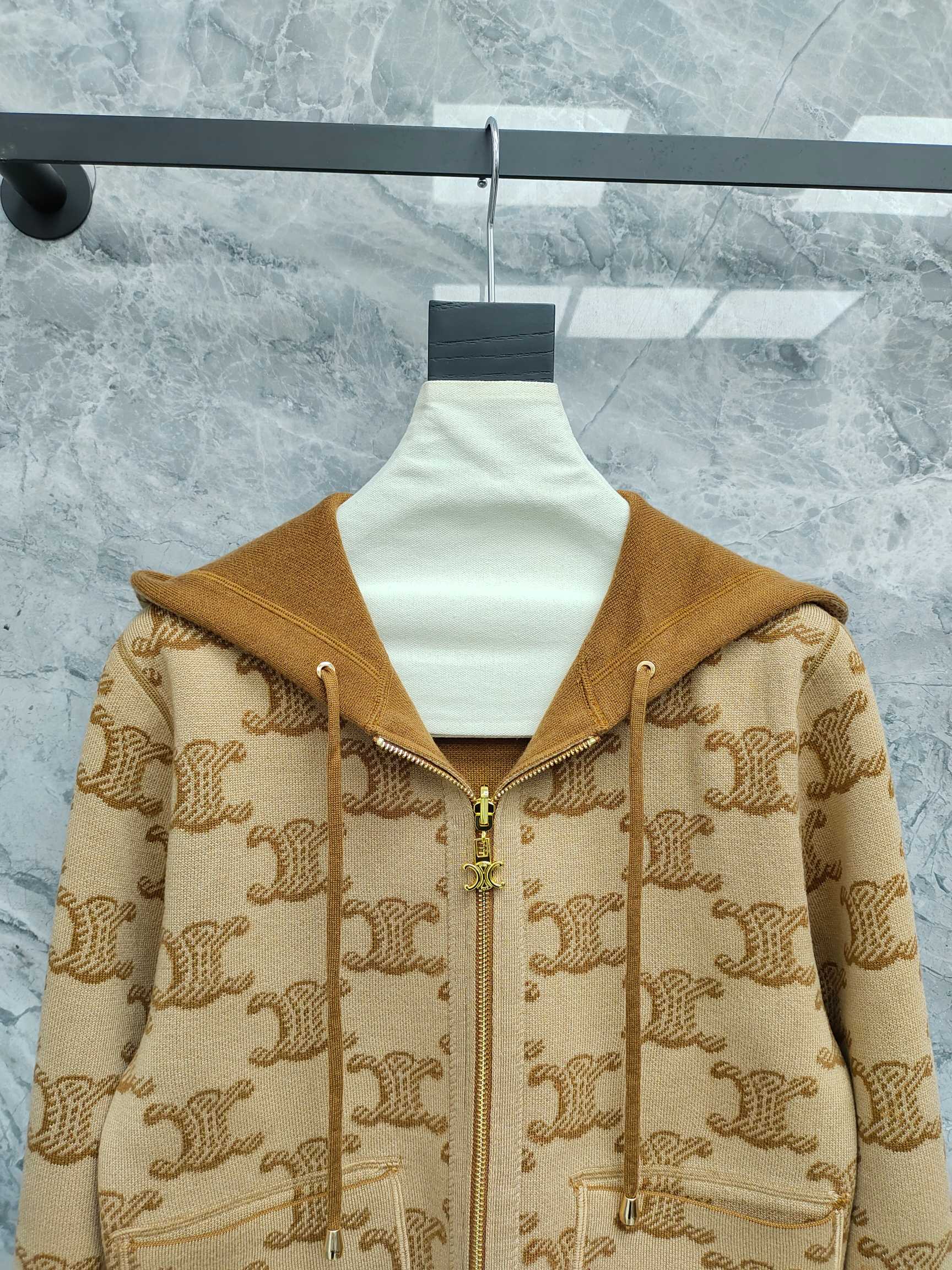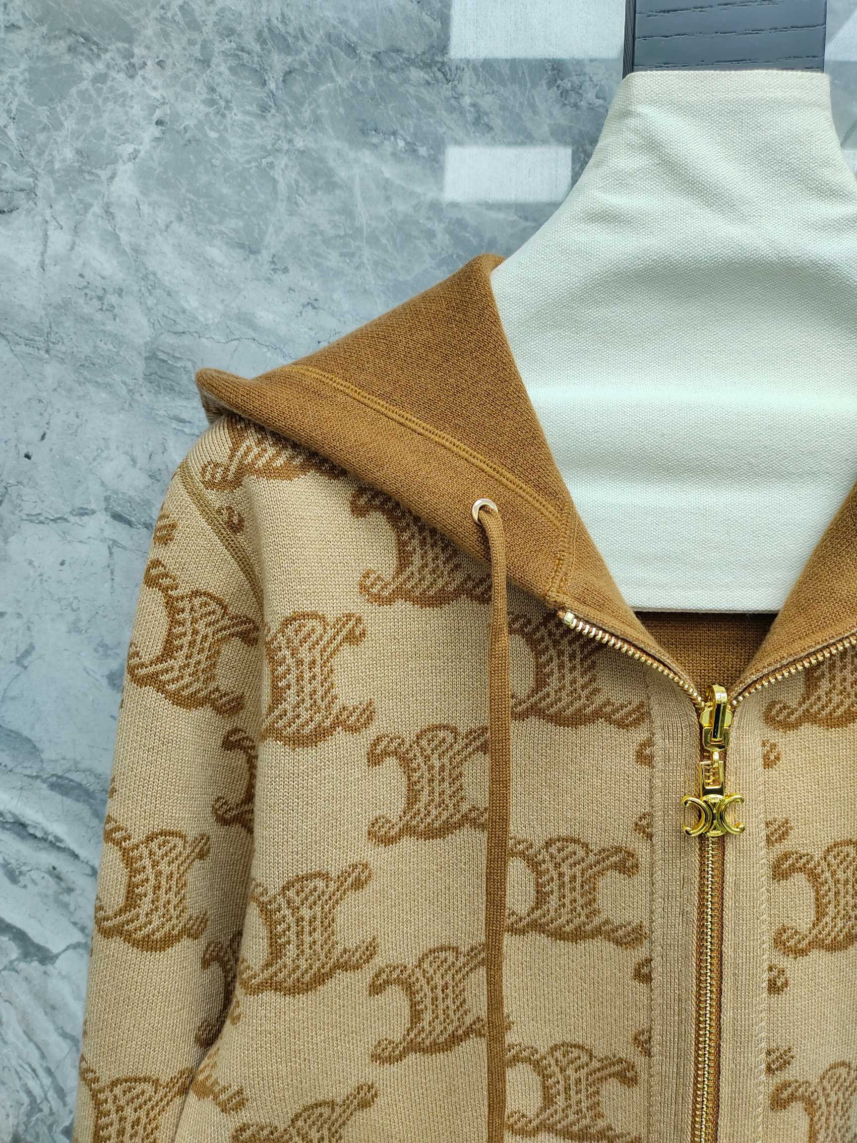 Celine 25 Hooded Knitted Cardigan Camel Brown Wool 282134