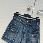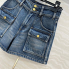 Celine Arc de Triomphe Metal Buckle Denim Shorts Blue Cotton