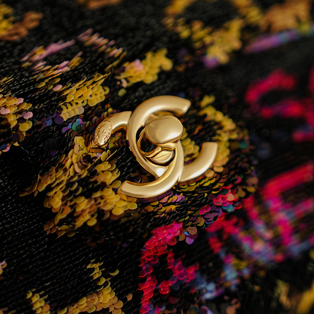 CC 2025 Flap Bag Black Mix Colors Sequin 308603