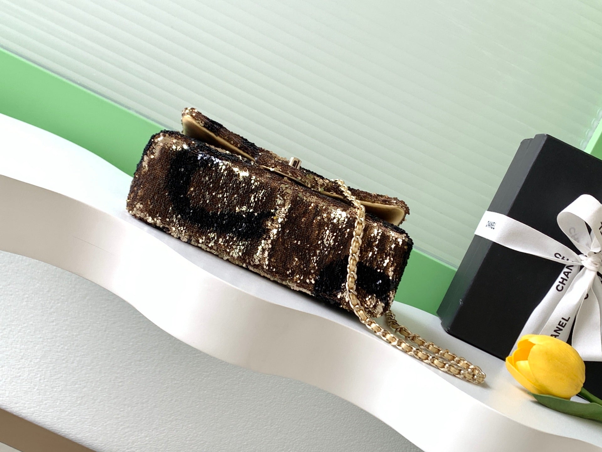 CC 2025 Flap Bag Brown Gold Sequin 298199
