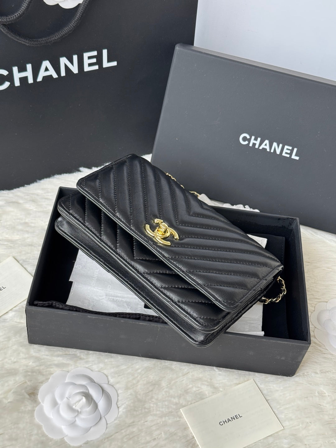 CC 2025 Woc 19cm Bag Black Gold Lambskin 299732
