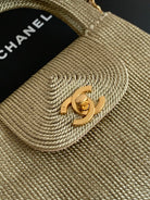 CC 2025 Woven Bag 19cm Gold Raffia Leather 296398