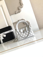 cc 24a nano 19cm kelly shopper bag sliver metallic lambskin