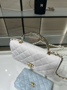 cc 25S Woc Top Handle 19cm White Grained Calfskin Light Gold Hardware