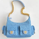 Chanel 25 Large Cargo Hobo Bag Blue Gold Denim Fabric