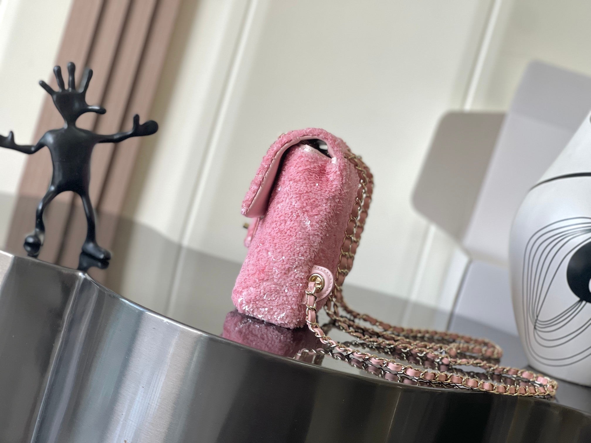 Chanel 25 Sequin Embroidered 21cm Bag Pink Leather Sequins 286171